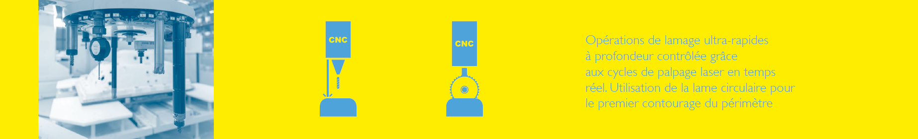Accessibilité maximale à la zone de travail pour le chargement / déchargement, grâce à la structure cartésienne avec rails au sol de la série L, même lorsque la machine est à l’intérieur d’une cabine. Mais aussi des réductions importantes des temps de cycle grâce à la sonde laser et au fonctionnement ultra-rapide.