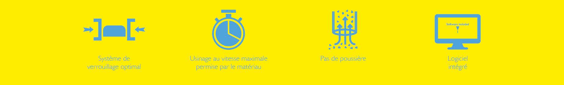 Grâce à la structure lourde de la machine et à la rigidité du système de blocage, on peut faire des trous et des fentes aux vitesses maximales permises par le matériau et l'outil