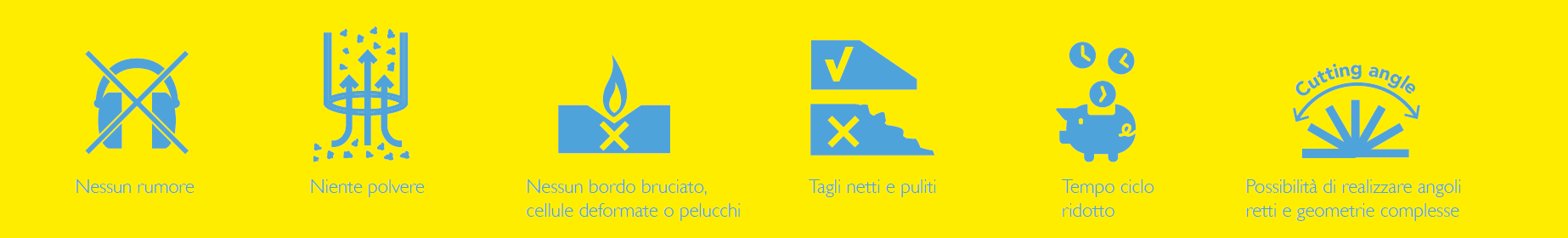 - non è possibile la penetrazione di umidità nel materiale, come può succedere con taglio a getto d'acqua.