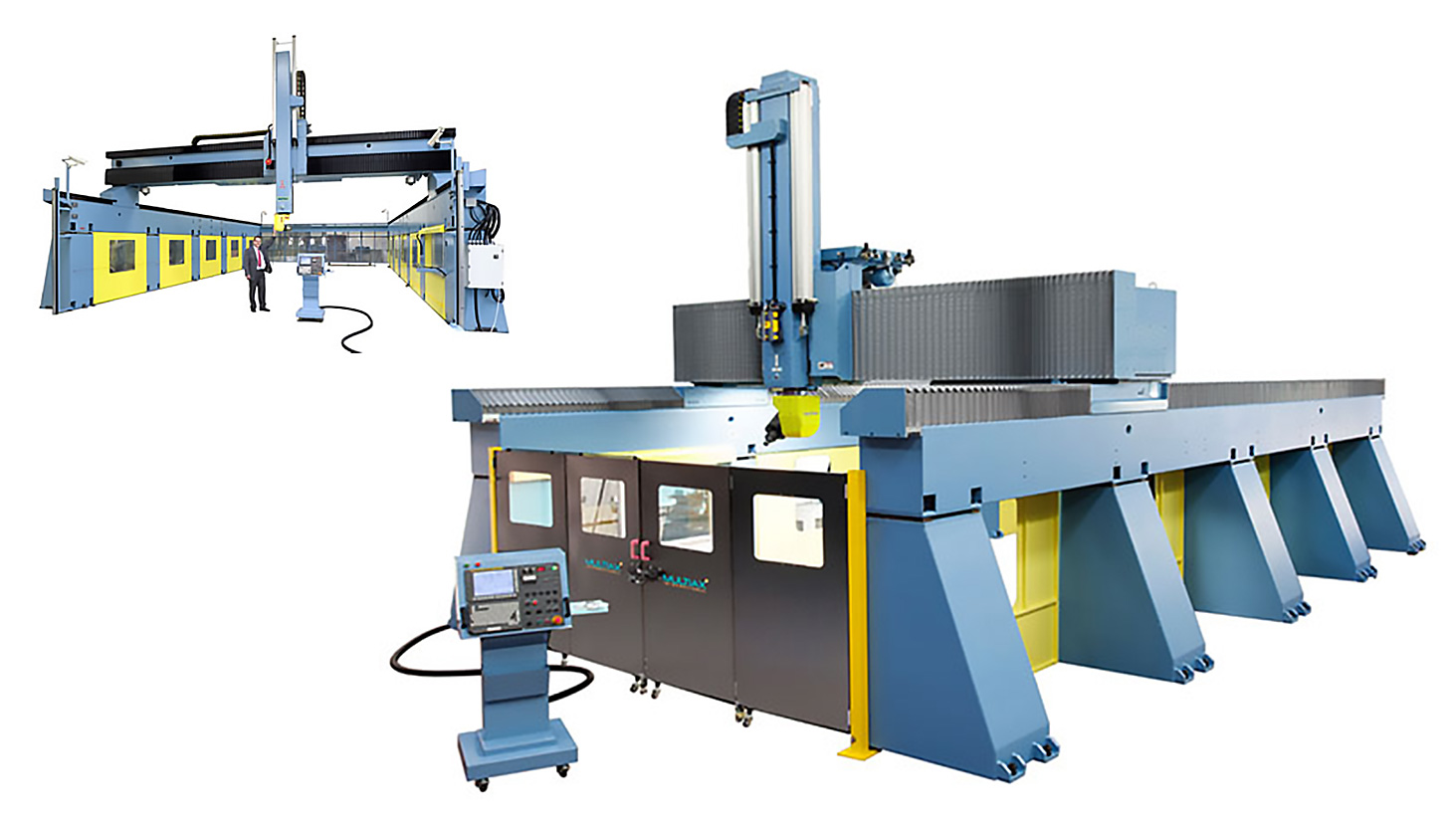 This massive 5-axis high-bridge CNC machine is ideal for machining large workpieces. The most common automated CNC machining operations include milling, cutting, drilling, countersinking, riveting and fastening applications, etc. The modular travelling bridge design with a wide range of optional components allows the User to machine large workpieces of various sizes while ensuring high cutting speeds, high precision and a smooth surface finish. High-level guides on Y-parallel side supports in various executions in terms of design, weight and component dimensions, addressing different processes in different industries, characterized by different necessities and expectations. These 5-axis CNC machines are ideal for complex, high-speed CNC machining of printed or laminated parts, even working on large parts in the aerospace, automotive and marine industries. Typical materials to be machined are: aluminium-based alloys, composite materials (fibreglass, carbon fibre, sandwich, honeycomb), tool plates, resins, epoxy resins, FRPs. In some cases, we integrate very useful devices and functions that give greater added value to users such as, for example, automated handling systems for loading/unloading large components, vision, measurement and control systems.Contact Us